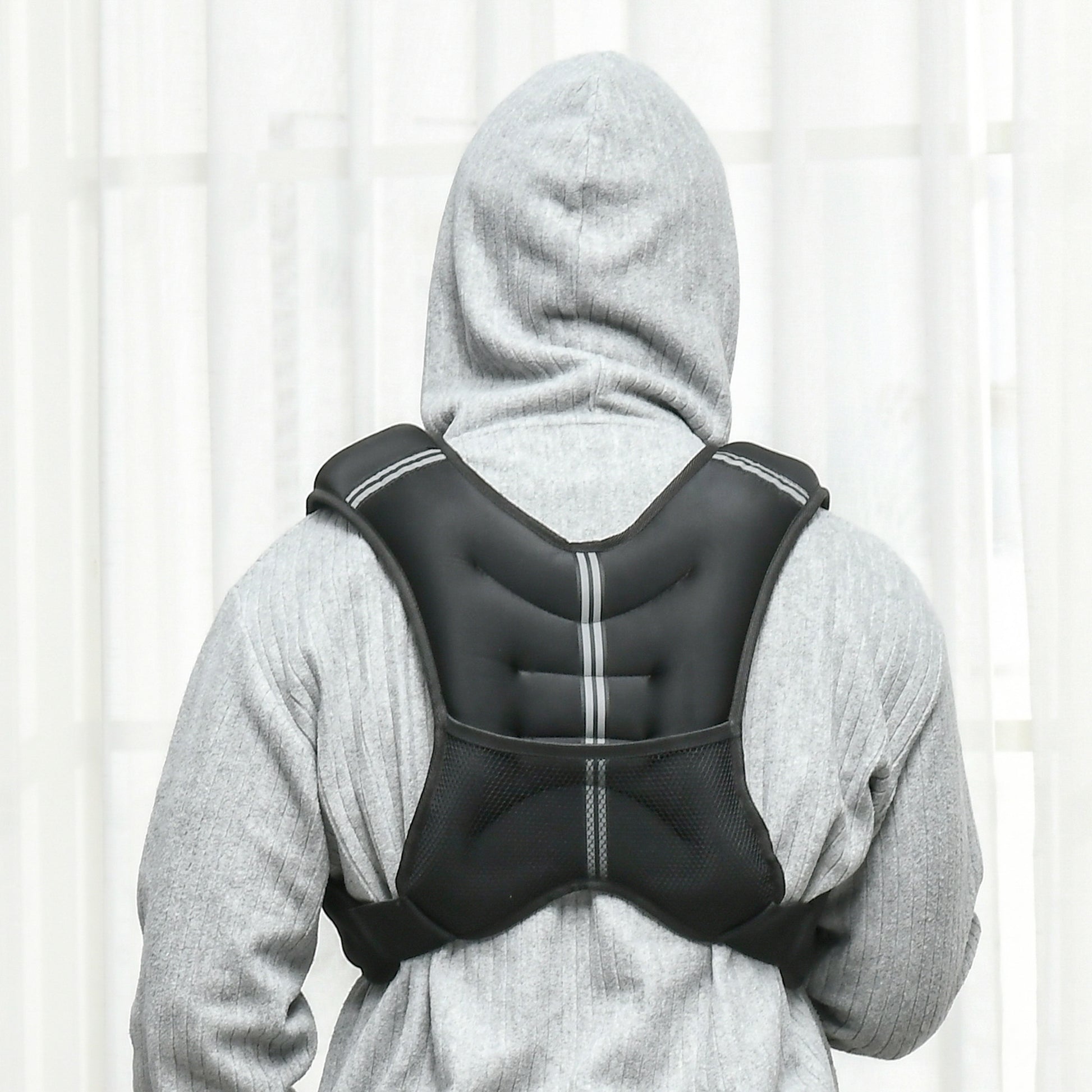 's running weight vest, crafted from oxford fabric and filled with metal sand, ensures an enhanced workout experience whether at home, office, or gym. Its broad, thick shoulder straps offer enhanced comfort. Easily adjustable, these straps can be tightened during workouts to keep the weighted walking vest secure. A handy mesh pocket at the back provides a safe spot for keys or a smartphone.
